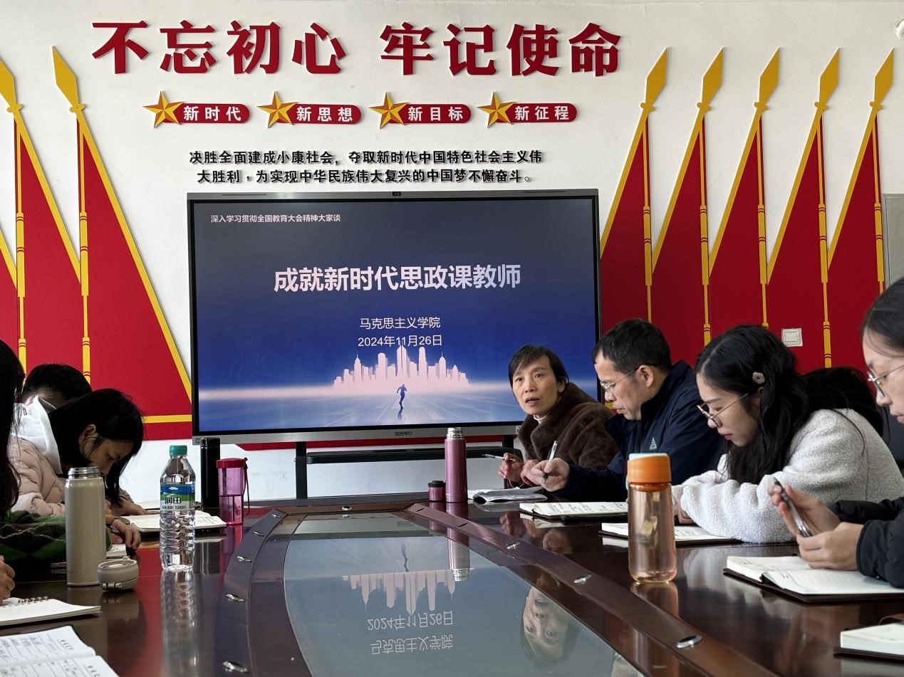 为深入学习贯彻习近平总书记重要讲话和全国教育大会精神,凝心聚力推动大思政课建设,2024年11月26日我院以“成就新时代思政课教师”为主题开展了全国教育大会精神大家谈活动。会议由学院党支部副书记董洁主持。