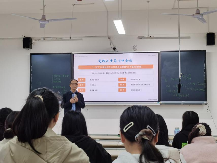 四是发挥思想导师作用。马院选派骨干教师担任“思想导师”,主动对接各二级学院,面向广大师生开展对象化、互动化宣讲。宣讲结合不同学科背景,注重理论联系实际,深入浅出地阐释全会精神,解读“十五五”规划中与各领域相关的政策导向与发展机遇,推动全会精神精准落地。