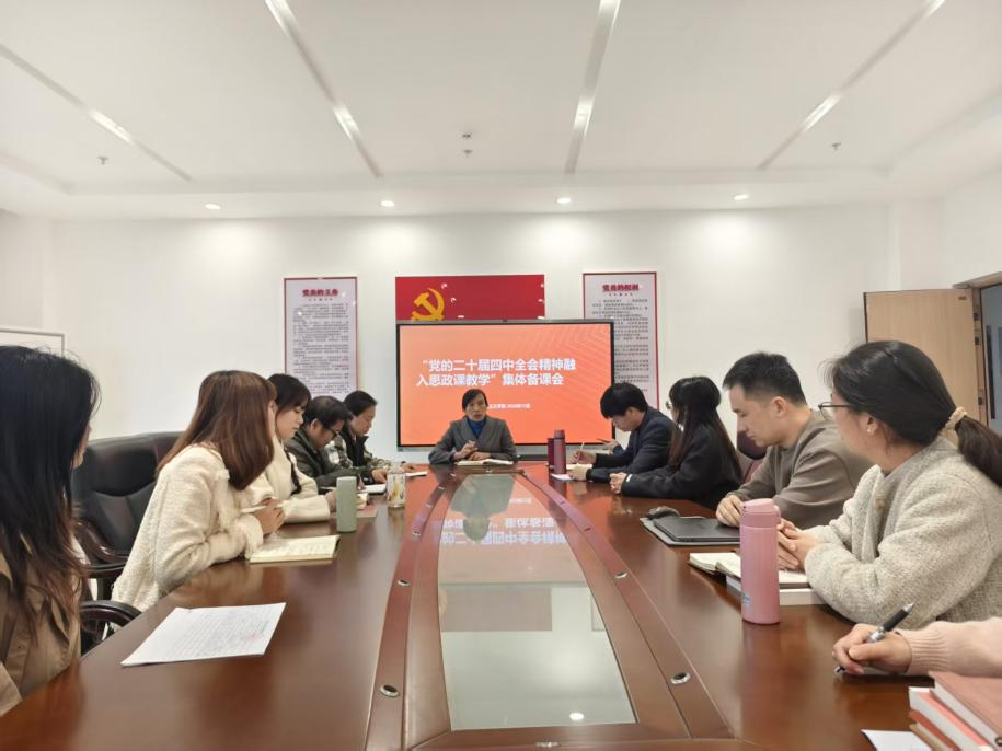 二是集体备课促融入。学院组织教研室开展“党的二十届四中全会精神融入思政课”集体备课会,重点研讨全会的重大意义、“十四五”时期伟大成就、“十五五”规划新战略新目标新要求如何融入课堂教学、如何结合学生实际讲深、讲透、讲活。