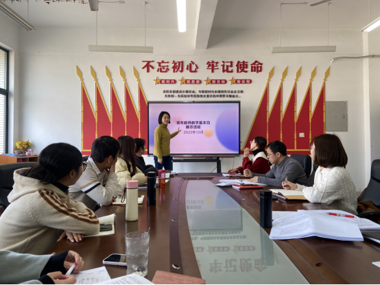 为深入学习贯彻习近平新时代中国特色社会主义思想,深入贯彻落实习近平总书记在学校思想政治理论课教师座谈会上的重要讲话精神,建设一支政治要强、情怀要深、思维要新、视野要广、自律要严、人格要正的思政课教师队伍,2023年12月5日,学院开展思政课专职青年教师教学基本功展示暨晒课活动。