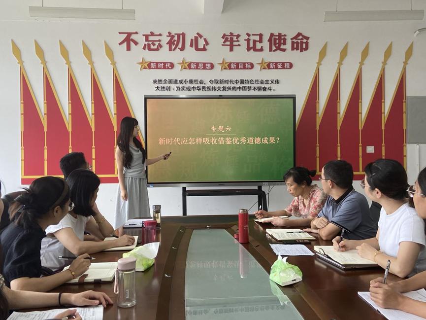 会上,新进教师涂雨昕老师先分享了关于“新时代应怎样吸收借鉴优秀道德成果”的整体备课思路,就教材分析、学情分析、教学方法、教学设计、教学创新、教学反思等六个方面进行了阐述,并就具体课程内容进行了试讲。