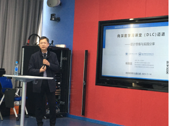 杨南昌教授以“向深度学习课堂(DLC)迈进——设计路径与实践分享。”为题,从DLC课堂的系统设计、DLC课堂的真实性学习设计、DLC课堂的评价设计、DLC课堂的学习体验设计等四个方面为教师们奉献上了一场精彩的讲座。