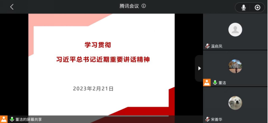 2023年2月21日下午,我院党支部召开党员大会,集中学习习近平总书记近期重要讲话精神。会议以线上方式进行,学院党支部副书记董洁主持会议,全体党员教师参加会议。