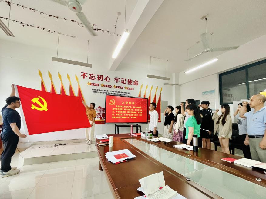 接着,全体党员面向鲜红的党旗,高举右拳,重温入党誓词。在铮铮誓言中,大家心灵再次接受洗礼,更加坚定理想信念,永葆赤诚初心,勇担时代使命。