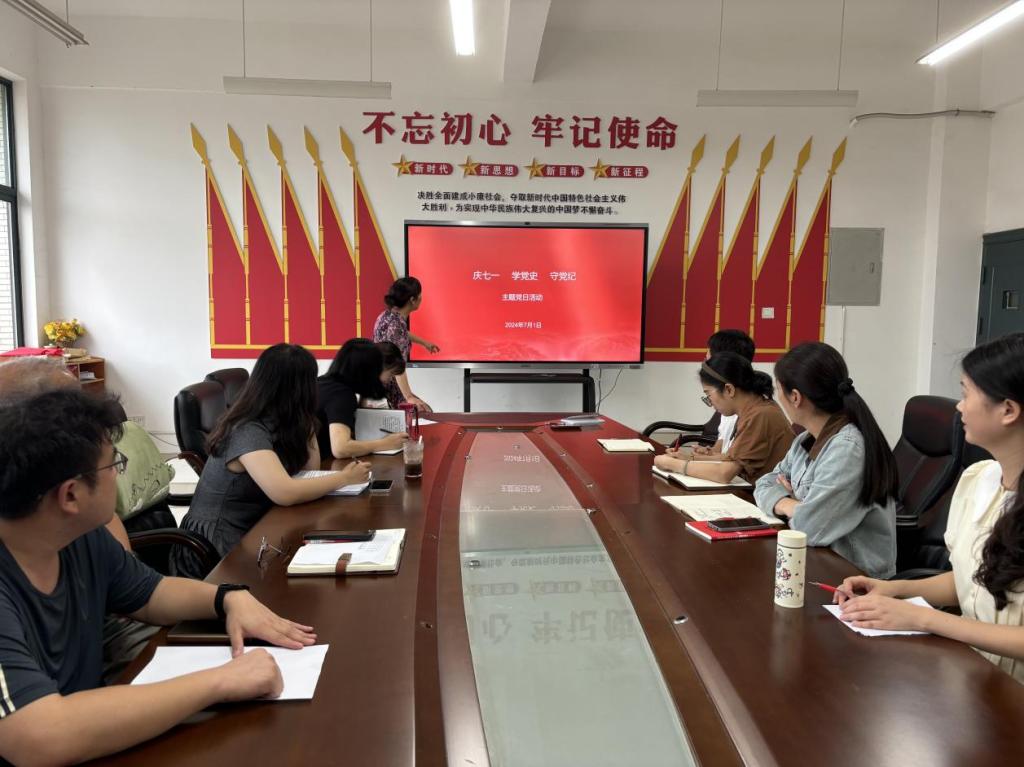 为庆祝中国共产党成立103周年,2024年7月1日,我院开展“庆七一 学党史 守党纪”主题党日活动,用行动诠释对党的忠诚与热爱。活动由学院党支部副书记董洁主持。