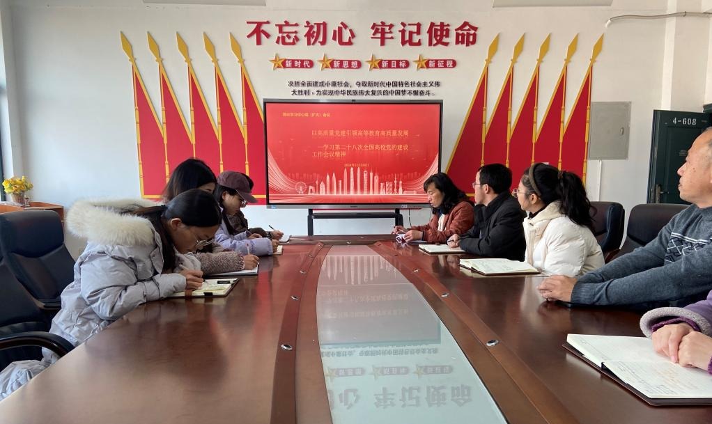 2024年12月24日下午,学院党支部召开理论学习中心组(扩大)会议,专题学习第二十八次全国高校党的建设工作会议精神。学院党支部副书记董洁主持会议。